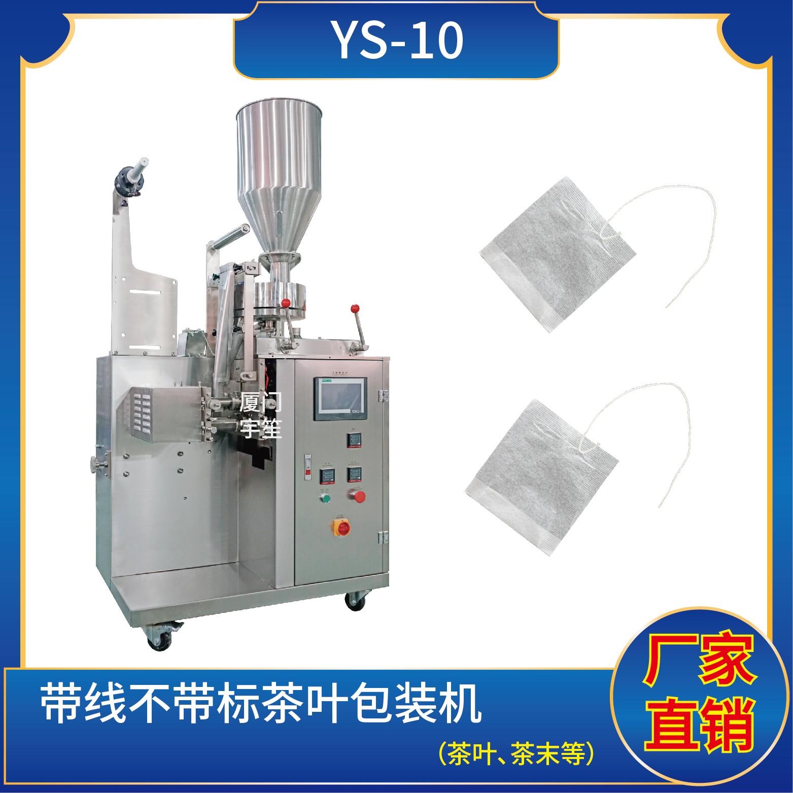 YS-10 新一代 袋泡茶包裝機特 點 1、適用于碎茶、藥茶、咖啡、植物等類似產品的自動包裝。2、包裝袋帶提線,可自動完成制袋、計量、充填、封合、分切及計數等功能。3、包裝材料:茶葉濾紙、棉線。 封口方式三邊封 技術參數計量范圍:1 - 10 g(0.6 ~ 26 ml)制袋尺寸:長 ( L ) : 50 - 80 mm 寬 ( W …