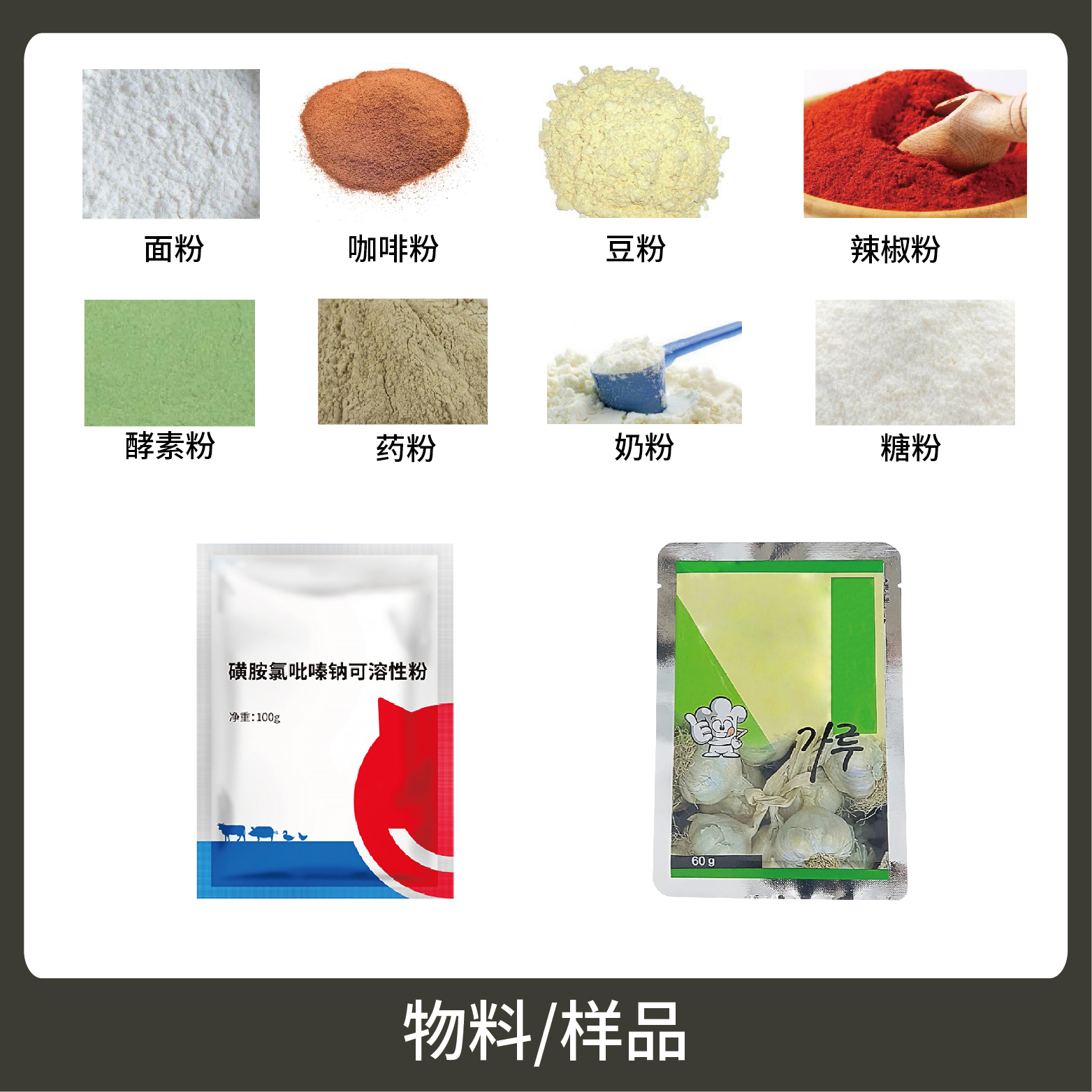 1、適用于食品、醫(yī)藥、化工、化妝品行業(yè)中顆粒、粉劑、液體、醬料等物品的計(jì)量包裝,如:調(diào)味粉、蛋白質(zhì)粉、營(yíng)養(yǎng)粉等。