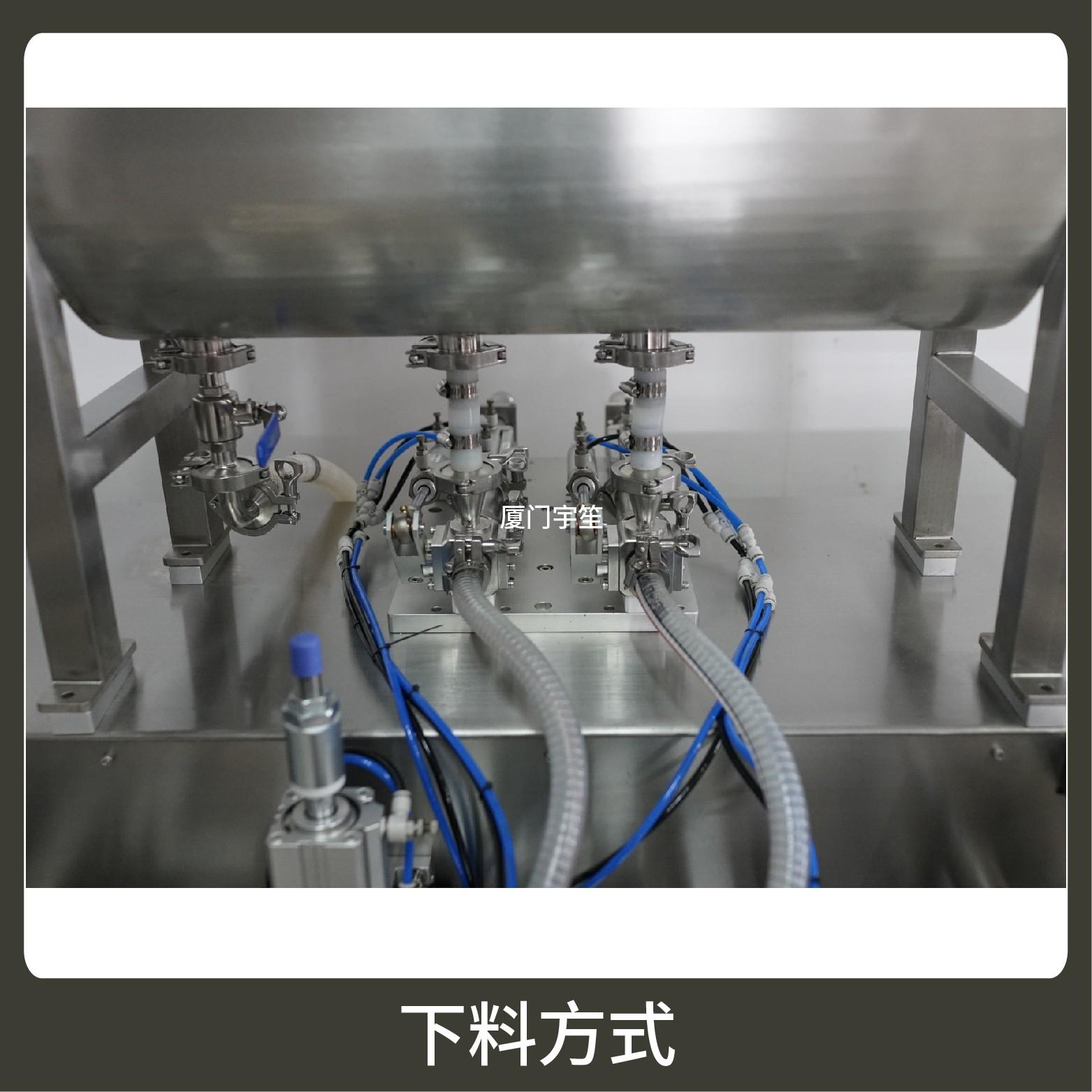 2、成品雙出,速度快,包裝流程全自動、無需人工操作。可根據(jù)充填物料的性質(zhì)選配不同的下料結(jié)構(gòu)