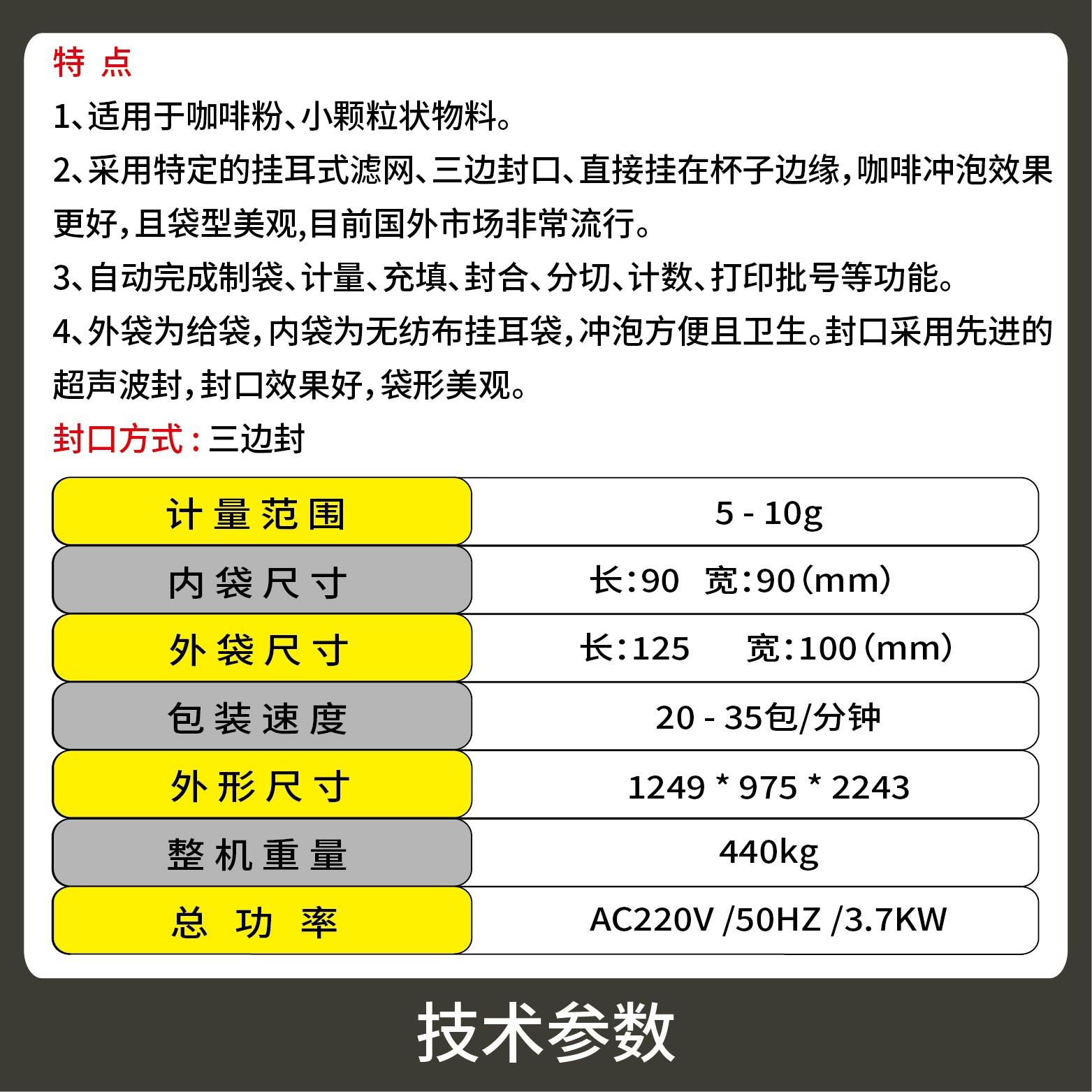 1、采用特定的掛耳式濾網(wǎng)、三邊封口、直接掛在杯子邊緣,咖啡沖泡效果更好,且袋型美觀,目前國外市場(chǎng)非常流行。