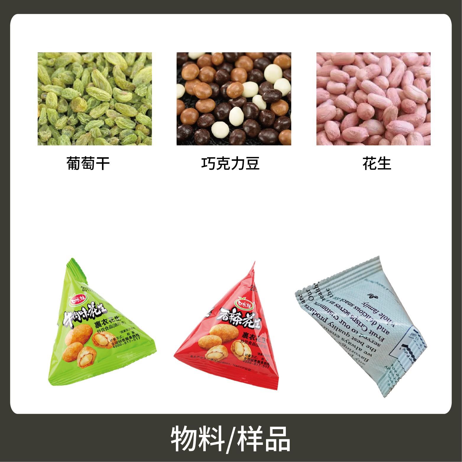 1、適用于食品、醫(yī)藥、化工、化妝品行業(yè)中顆粒物品的計量包裝,如:尖角脆、巧克力豆、qq糖等。